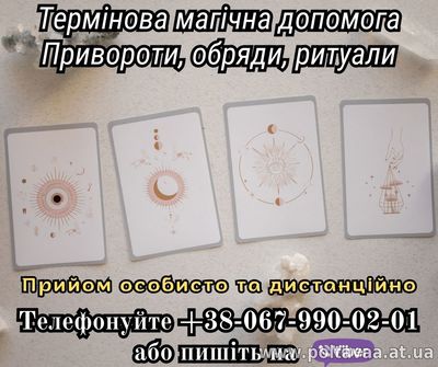 Повернути чоловіка до родини. Приворот по фото. Ворожіння на картах таро дистанційне. Любовний приворот. Відкриття фінансового каналу. Ворожіння на ситуацію. Ворожіння на майбутнє. Діагностика Таро. Обряд на ко