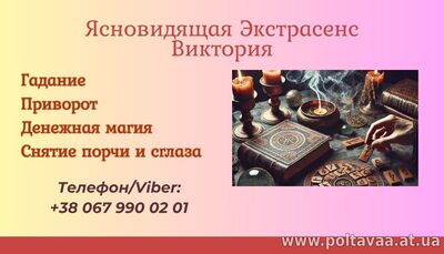 Ищете помощь ясновидящей, экстрасенса, рунолога и таролога? Меня зовут Виктория, и работаю с людьми, помогая менять их судьбу с помощью древних знаний, ритуалов и магии. Я чувствую энергии, которые |