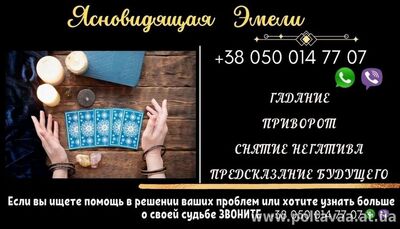 Хотите узнать будущее или вернуть любимого человека? Ясновидящая, экстрасенс и таролог Эмели поможет вам в самых сложных жизненных ситуациях. С её даром и многолетним опытом вы сможете найти ответы